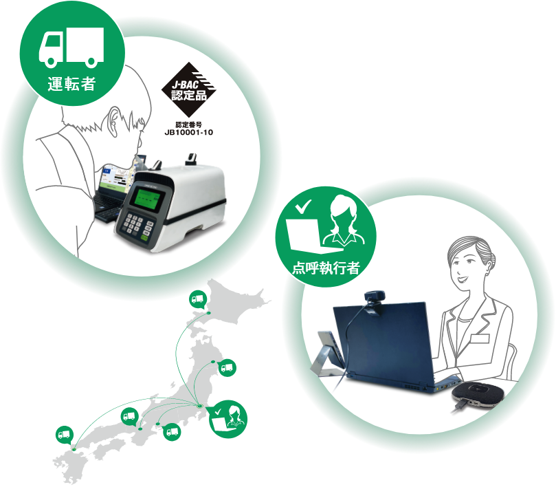 対面・遠隔・自動点呼に対応。